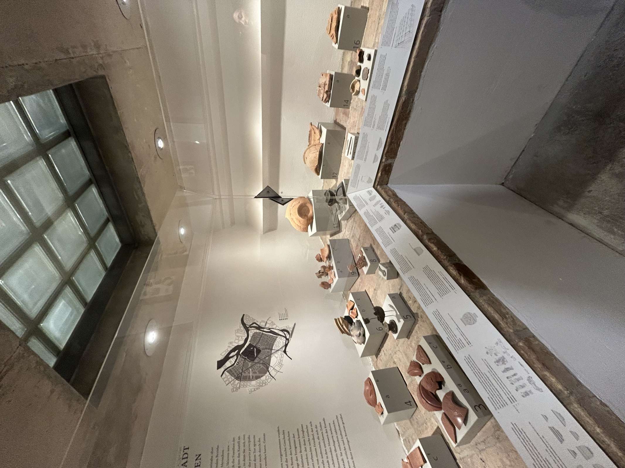 Anschließend begaben wir uns nach Süden zum Michaelerplatz in den Bereich der ehemaligen Lagervorstadt (canabae) an der Kreuzung der Limesstraße und der aus dem südwestlichen Lagertor kommenden und Richtung Aelium Cetium (St. Pölten) bzw. Scarbantia (Sopron) führenden Via decumana. Hier haben Ausgrabungen mehrere antike Häuser und Werkstätten nachgewiesen, von denen nach der Neugestaltung des Platzes noch die Hälfte der Fundamente eines der Häuser zu sehen ist.