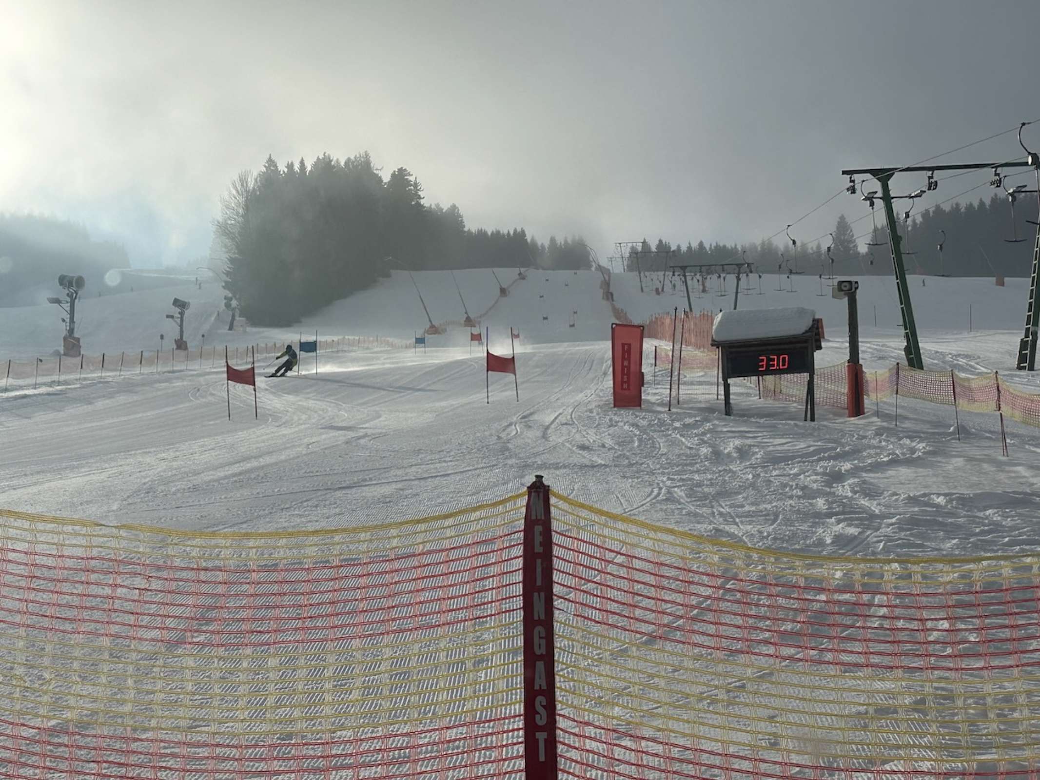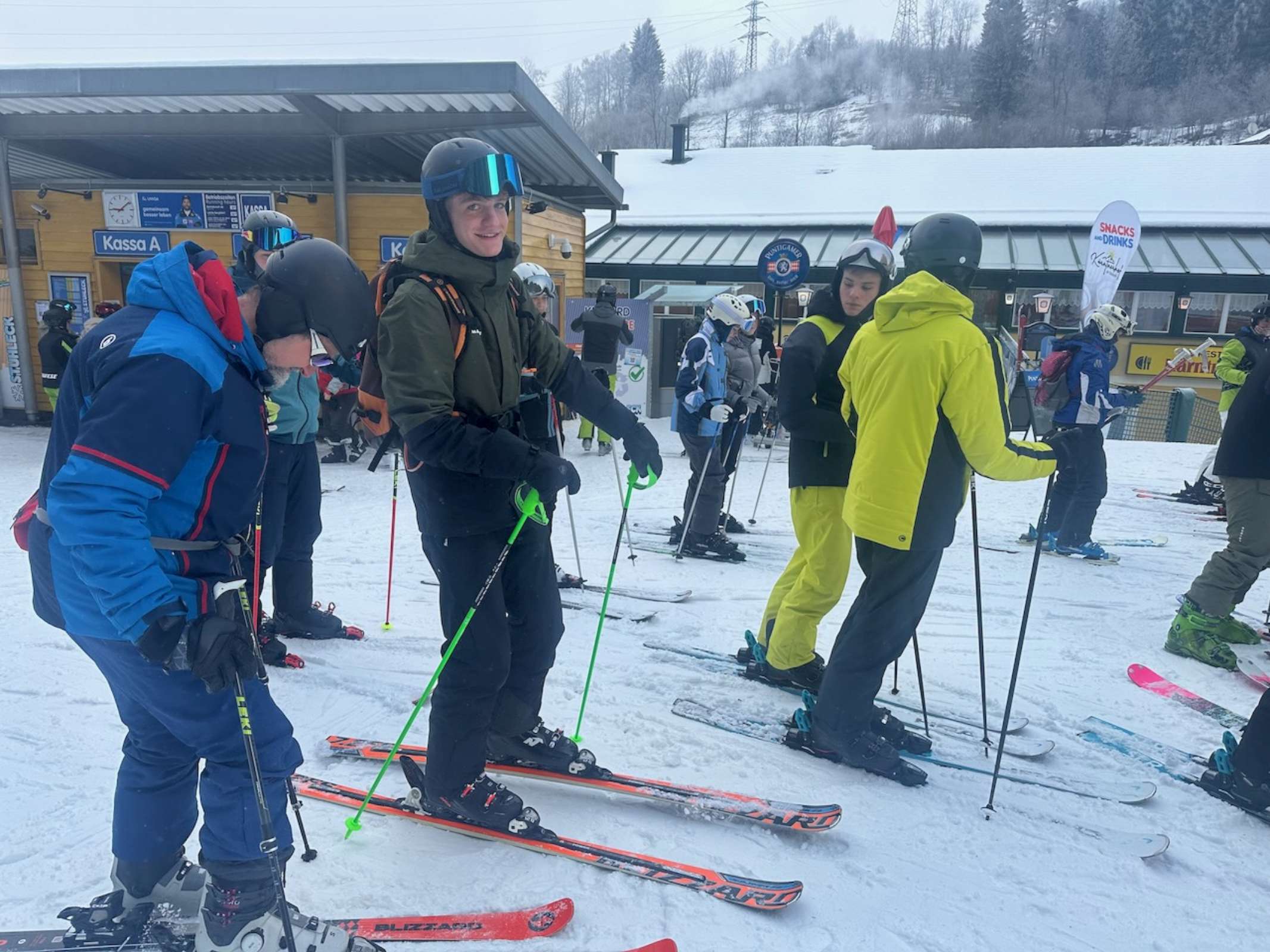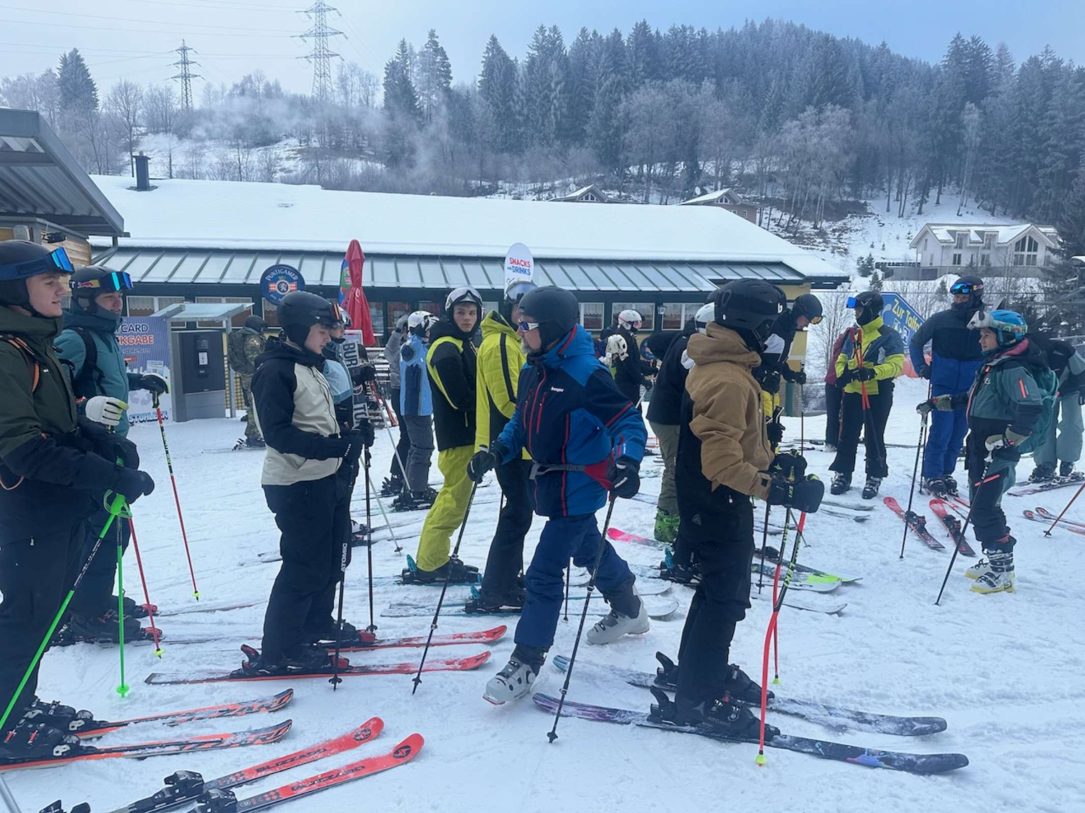 Noch vor Sonnenaufgang brachen wir mit dem Bus, dessen Finanzierung dankenswerterweise der Elternverein übernimmt, aufs Stuhleck auf. Nach einem kurzen Einfahren, Startnummernausgabe und der Besichtigung der eigens für uns gesteckten Rennstrecke ging es auch schon mit dem Rennen los. Bei besten Schnee- und Pistenbedingungen lieferten sich SchülerInnen aus allen Oberstufenklassen einen spannenden und hochkarätigen Wettkampf in zwei Durchgängen, bevor es zum wohlverdienten Mittagessen ins Alpengasthaus direkt neben der Piste ging. Am Nachmittag durften die SchülerInnen in Kleingruppen das Skigebiet erkunden und noch einige Pistenkilometer zurücklegen. Bei der abschließenden Siegerehrung ließen wir einen erfolgreichen Renntag ausklingen. Die schnellsten Zeiten des Tages brachten Heidi Csida mit 34,22 s und Tim Pointinger mit 30,99 s ins Ziel, die sich damit zur Skimeisterin bzw. zum Skimeister krönten.
